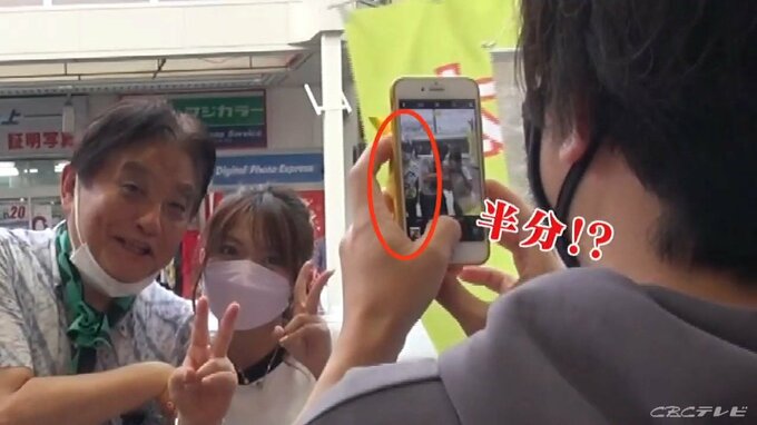 写真を撮っている様子をよく見てみると、背後霊のように後ろから顔を出したり、時には半分切れている場面も・・・。