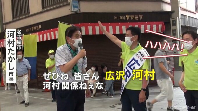 河村たかし市長:「是非ね、皆さん、広沢!河村!河村関係ねぇな」「ハハハハ!」