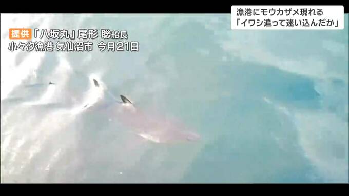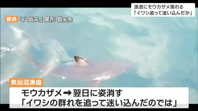 翌日にはいなくなっていましたが、気仙沼漁協は、「イワシの群れを追って港に迷い込んだのではないか」と話していました。また、漁港内にいたイワシが急に姿を消したため、尾形さんは、サメが来たので逃げたのではないかと話していました。養殖施設などへの被害はなかったということです。