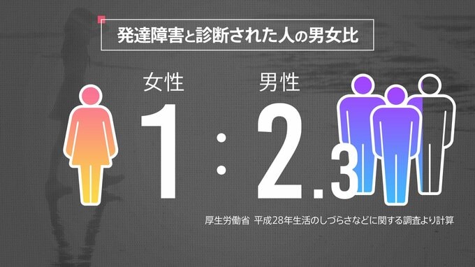 一見すると、発達障害は男性に多いとよめるが、実は女性も診断数以上に存在していると考えられている。