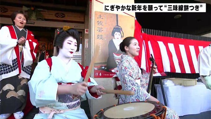 今年も残すところあと3日です。高知市の料亭では毎年恒例の「三味線餅つき」が行われ、大勢の人が少し早い正月気分を楽しみました。江戸時代に日本各地で行われたとされる三味線や太鼓に合わせて餅をつく「三味線…