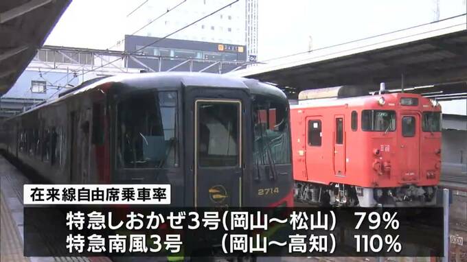 一方、在来線では南風3号の自由席乗車率が110%となるなど、やや混雑している列車もあります。