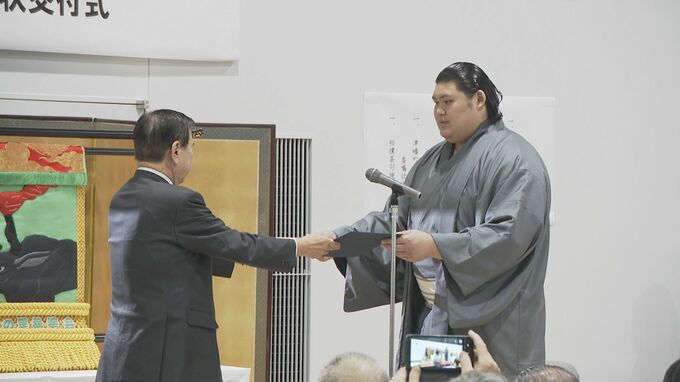 大の里関は「津幡町から化粧まわしをもらうことはすごくうれしいし、より一層頑張らないとダメだなという気持ちになった。しっかり準備してけががないよう、15日間戦い抜いて勝ち越し目指して頑張る」と意気込みを語りました。