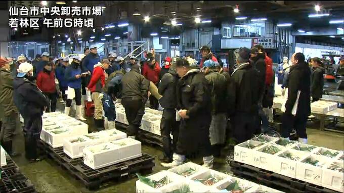 仙台市中央卸売市場には30日、年越しや正月用の魚介類が並び、次々に競り落とされていきました。