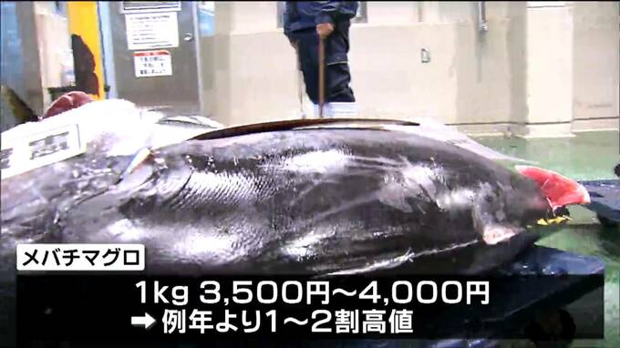メバチマグロは1キロあたり3500円から4000円と例年よりも1割~2割高値で取り引きされました。