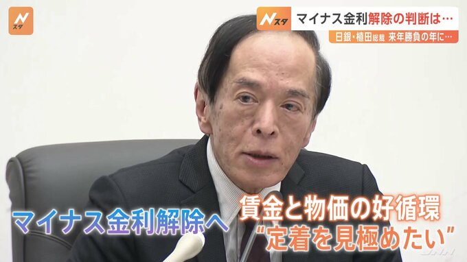 来年、日本銀行・植田総裁は勝負の年を迎えます。17年ぶりの利上げとなる「マイナス金利政策」の解除を判断するとみられていて、難しい舵取りが求められます。今月25日、経団連の講演会に出席した日銀の植田総裁。…