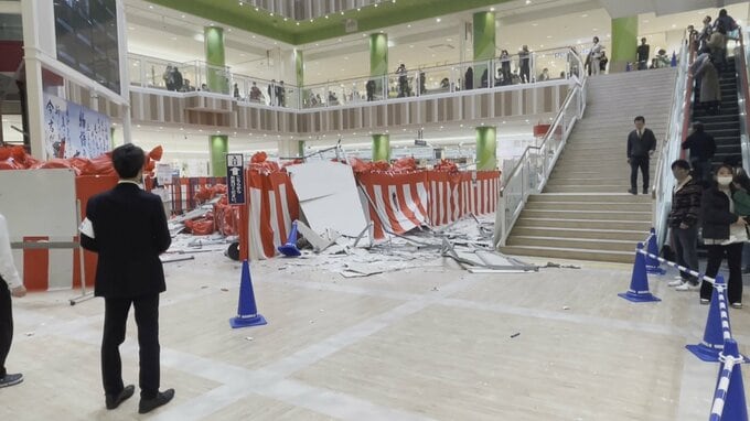震度5強を観測した富山。小矢部市にある三井アウトレットパーク北陸小矢部では...。客:「きゃー」客:「すごい、やばい。2階やばい。とりあえず大丈夫」水の音:「ジャーッ!」小矢部市のアウトレットモールでは…