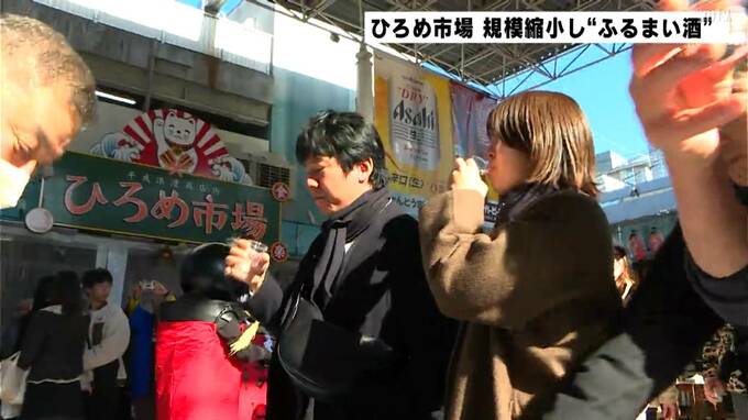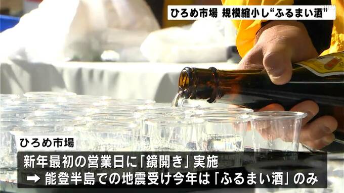 高知県高知市の「ひろめ市場」では、毎年、新年最初の営業日に「セレモニー」や「鏡開き」を行っていますが、1日の能登半島での地震被害を受け、今年は規模を縮小し「ふるまい酒」のみとなりました。