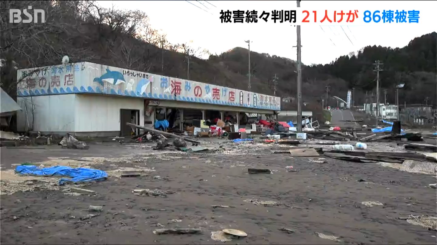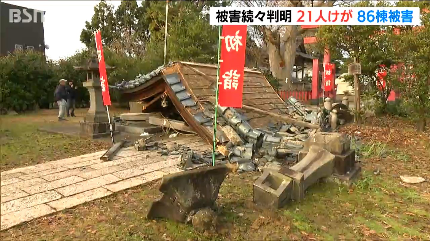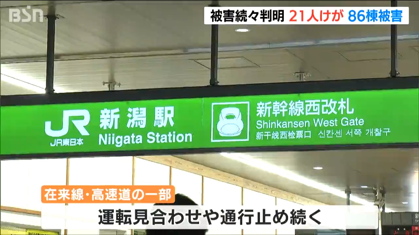 新潟県によりますと、県内では86棟の建物が被害を受けていて、21人がけがをしたということです。