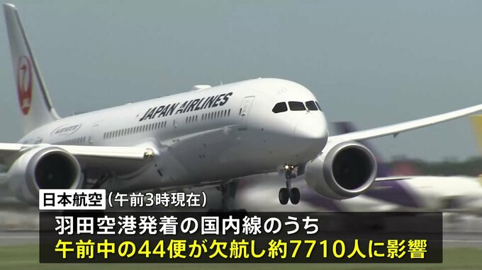 きのう(1月2日)、羽田空港の滑走路で起きた航空機事故の影響で、きょう(3日)も、羽田空港を発着する便を中心に日本航空と全日空あわせておよそ100便が欠航する見通しです。日本航空はきょう(3日)の運航につ…