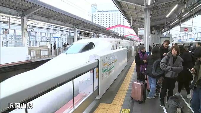 年末年始をふるさとで過ごした人たちのUターンがピークを迎え、JR岡山駅の新幹線ホームでも混雑が見られました。