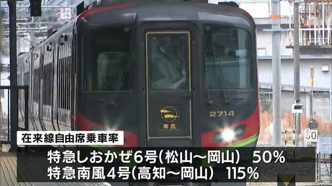 また在来線でも四国方面からの一部の特急列車などで混雑が見られました。
