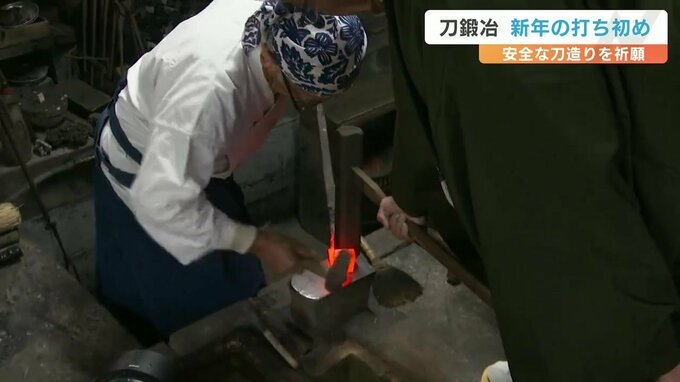 熊本県荒尾市の刀鍛冶が今年一年の安全な刀造りを祈願し、新年の打ち初めをしました。刀匠 松永源六郎さん(75)は3日から窯に火を入れ1300度以上に熱した玉鋼にハンマーを打ち込みました。この道50年の松永さん…