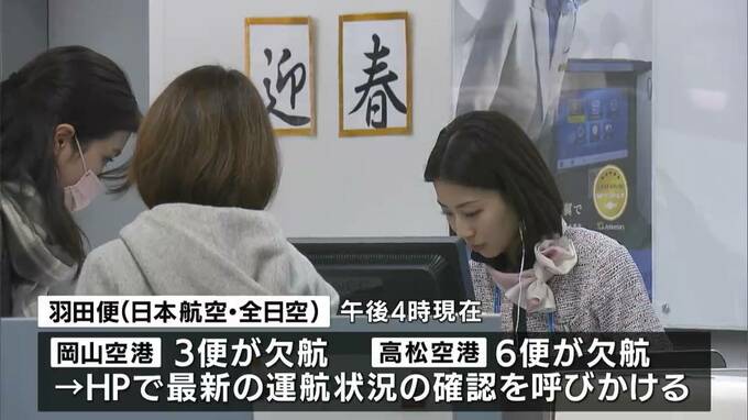 年末年始をふるさとで過ごした人たちのUターンがピークを迎えていますが、2日、羽田空港で発生した事故の影響で、岡山空港では一部の便で欠航や遅れが発生しています。