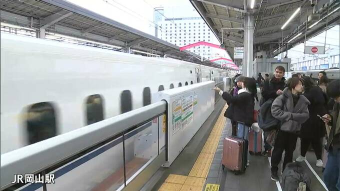 一方、JR岡山駅の新幹線上りホームは、大きな荷物を持った家族連れなどで混みあっていました。