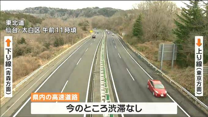 一方、ネクスコ東日本によりますと、東北自動車道など県内の高速道路では今のところ渋滞はなく、今後も5キロ以上の渋滞は発生しないと見られています。