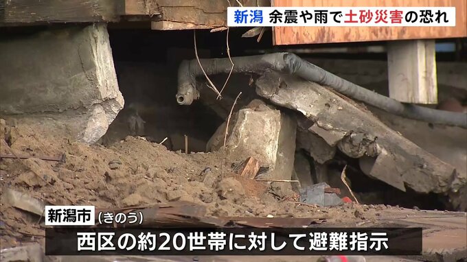 液状化現象により大きな被害を受けた新潟市では、昼過ぎにかけて雷を伴ったやや強い雨が降る見込みです。新潟市は、今後の余震や雨などで土砂災害が起きる恐れがあるとして、西区のおよそ20世帯に対して、きのう避…