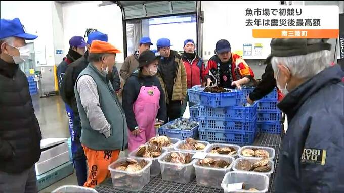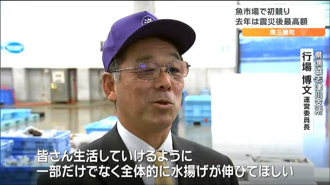 宮城県南三陸町の魚市場で4日朝、初競りが行われ、今年1年の取り引きが始まりました。