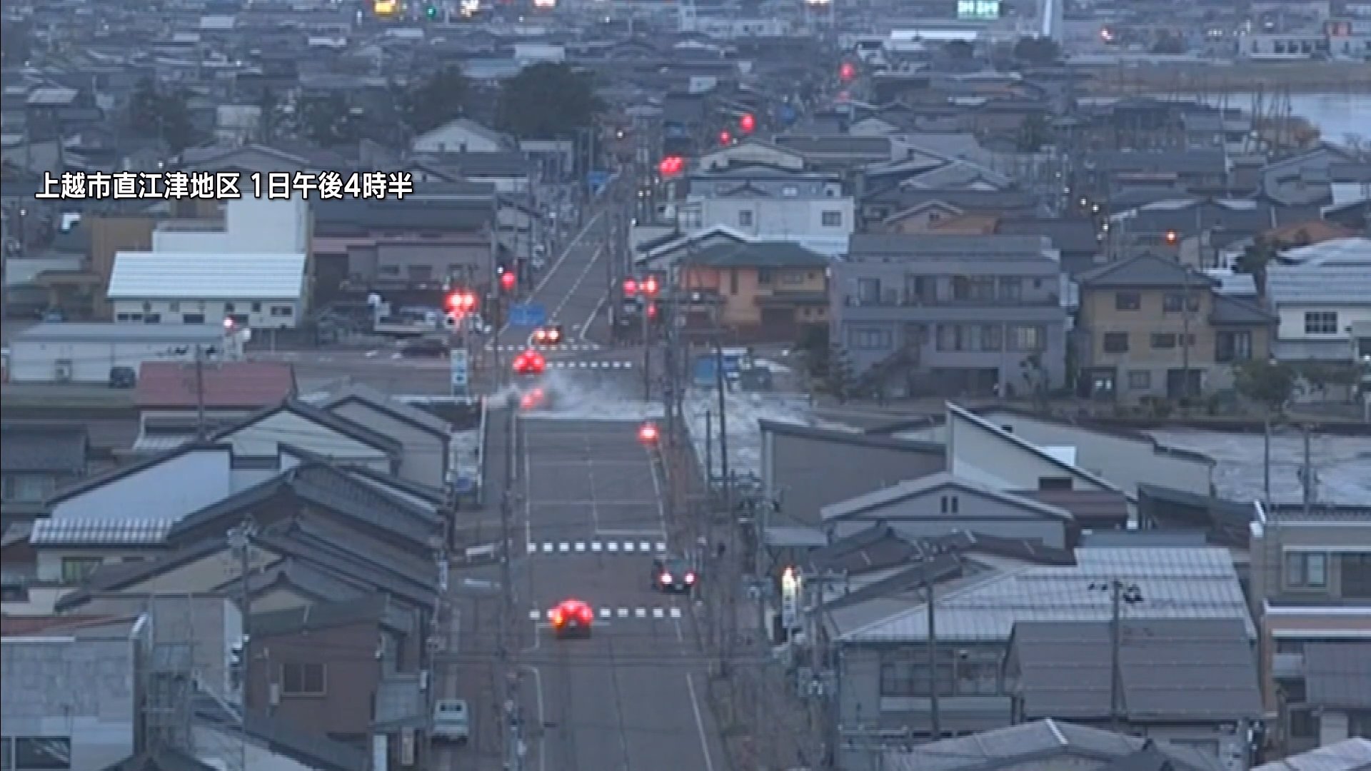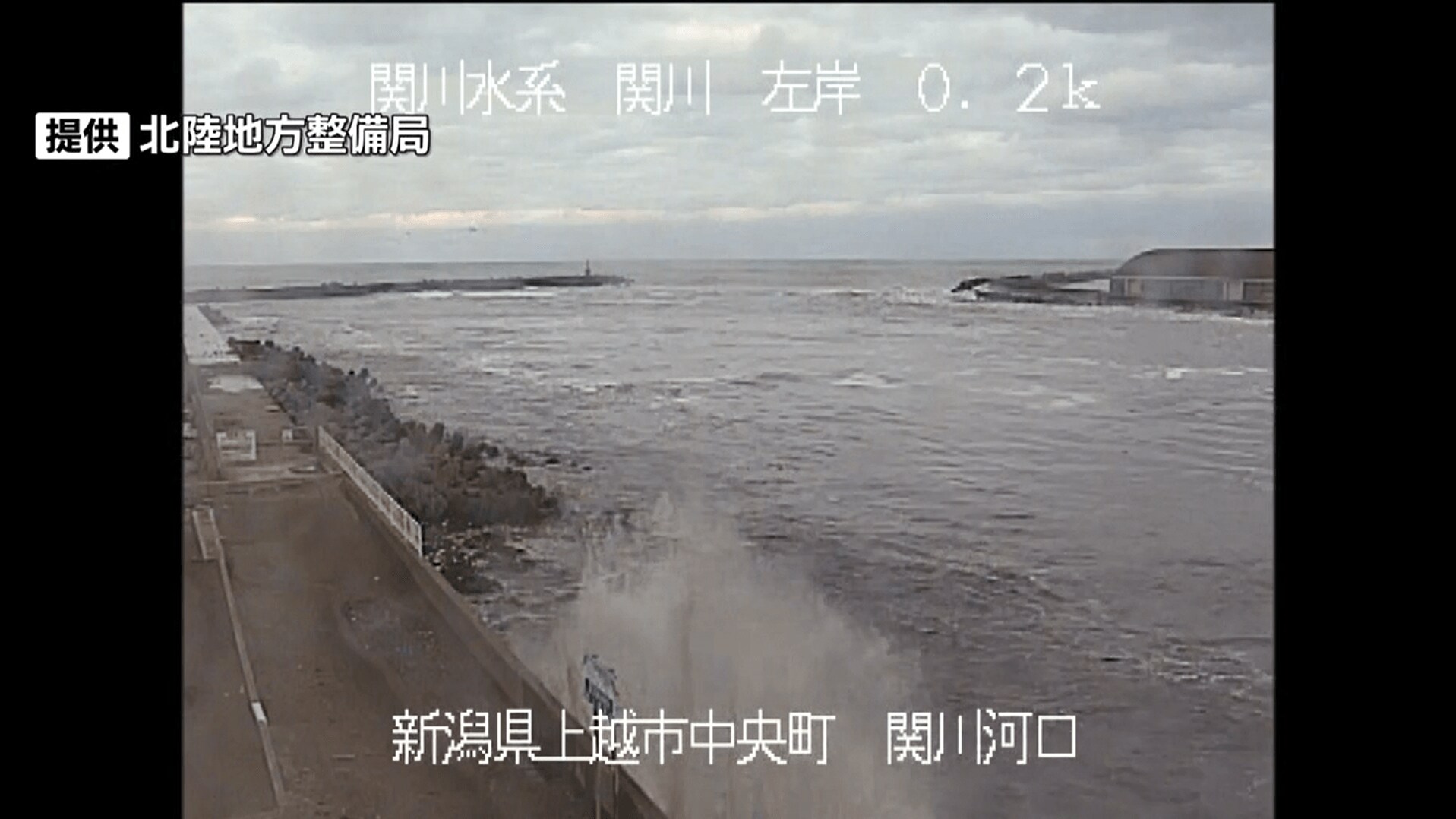 また、上越市直江津地区を映したBSNの情報カメラでは、同時刻に遡上した津波が橋の上にまで達した様子が映っていました。
