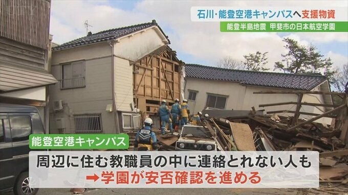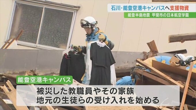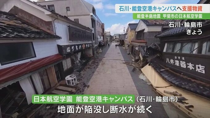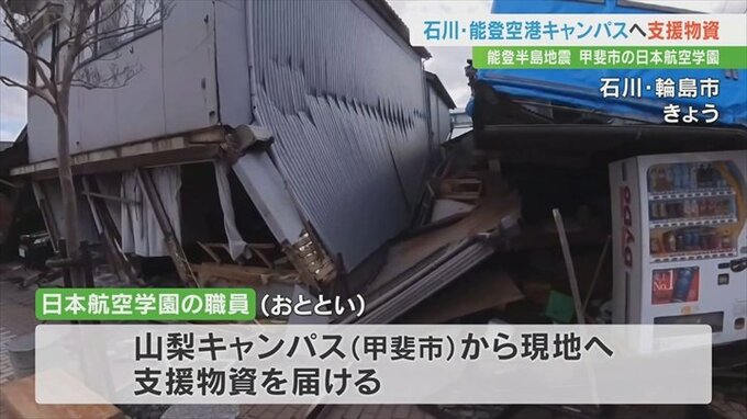 甲斐市にある日本航空学園は地震の被害を受けた石川県輪島市にある能登空港キャンパスに職員らが支援物資を届けました。