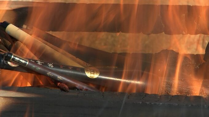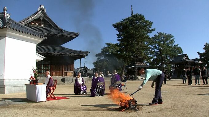善通寺の金堂脇にある筆塚で毎年、正月に行われる筆供養です。