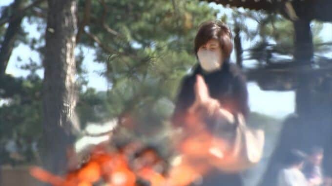 参加した人たちは自らの書の上達も祈りながら手を合わせていました。