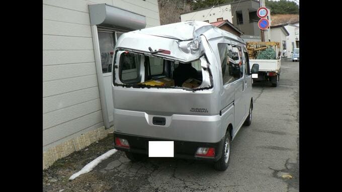 脱落したタイヤに巻き込まれた人はおらず、けが人はいませんが、タイヤが衝突した車は天井部分が激しく破損しました。
