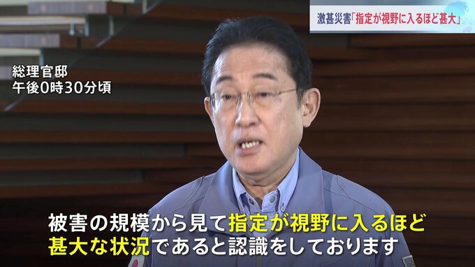 岸田総理は、被災地への激甚災害指定について「指定が視野に入るほど甚大な状況」と述べ、迅速に対応すると訴えました。岸田総理「被害の規模から見て、指定が視野に入るほど甚大な状況であると認識をしております…