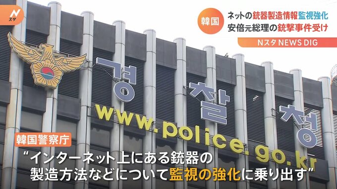 安倍元総理の銃撃事件を受け、韓国の警察は、インターネット上にある銃器の製造方法などについて監視の強化に乗り出すと明らかにしました。韓国警察庁によりますと、サイバー捜査を担当する警察官など1000人あまり…