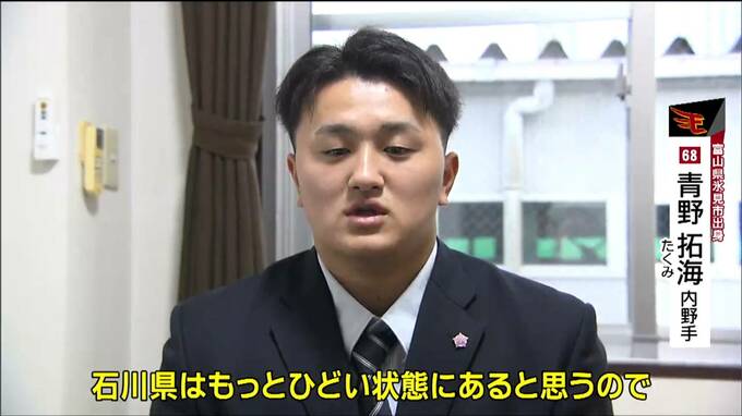 また、出身地の富山県氷見市で被災した青野選手。一時避難所生活をしていましたが、予定通り入寮しました。