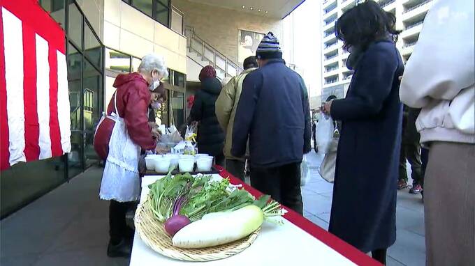 静岡市葵区の七間町町内会では、町名の「七」にちなんで七草がゆを20年以上前から毎年、無料で振舞っています。地元の農家がつくった七草のスズナやスズシロなどを入れた特製の七草がゆ250杯が用意しました。