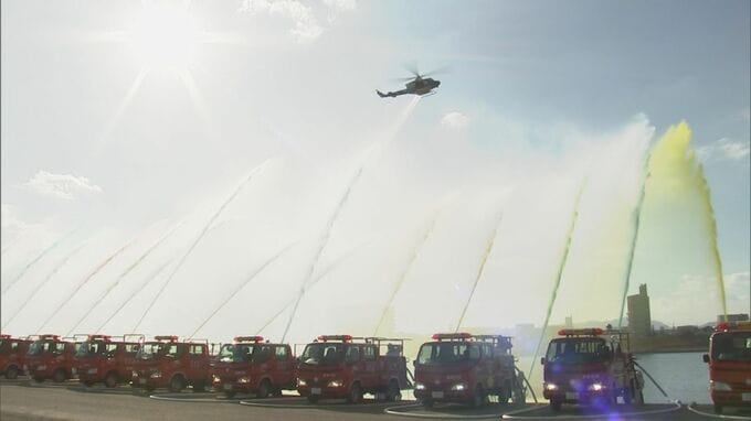 消防職員と消防団員が今年1年の士気を高める新春恒例の「消防出初め式」が、宮崎県宮崎市でありました。宮崎市の大淀川市民緑地で行われた出初め式には、市消防局の職員や市内の消防団員など約1100人が参加。式で…