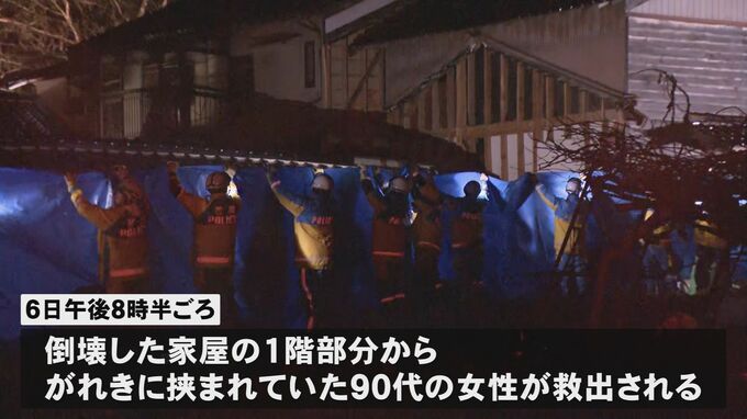 警察によりますと6日午後8時半ごろ、珠洲市正院町で倒壊した家屋の1階部分からがれきにはさまれていた90代の女性が救出されました。