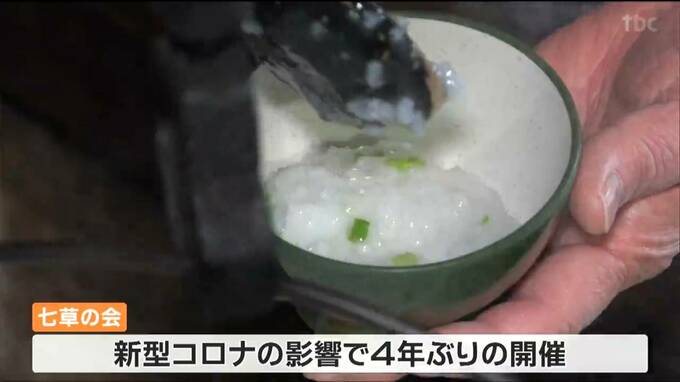「七草の会」は伝統行事を後世に伝えていこうと地元の財団が開いていますが、新型コロナの影響で4年ぶりの開催となりました。