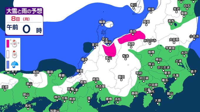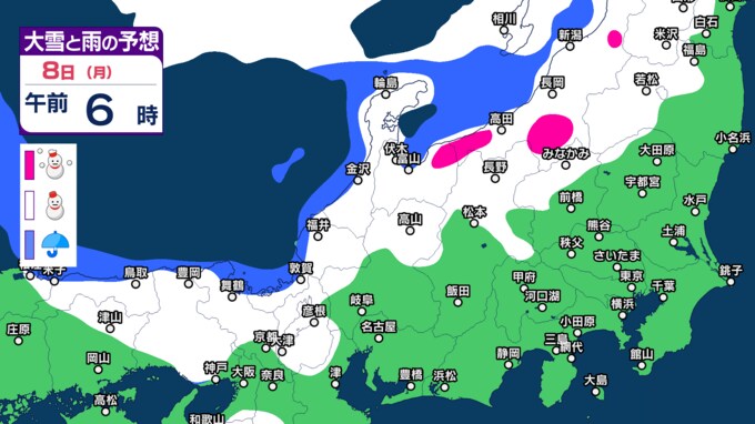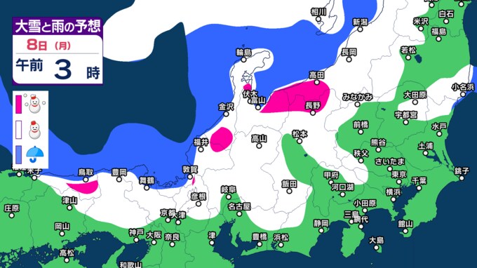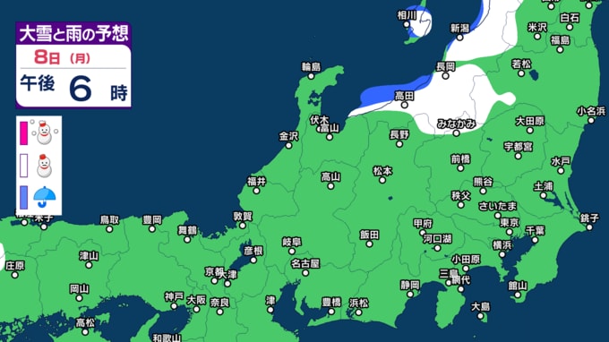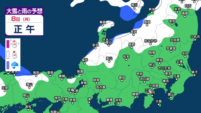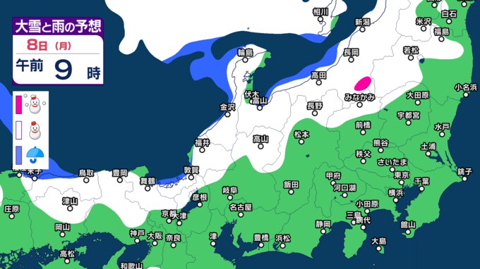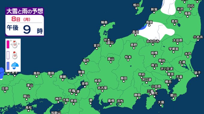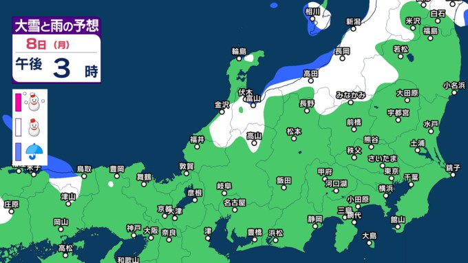 【連続画像】北陸~関東 雪・雨シミュレーション8日(月)~11日(水)