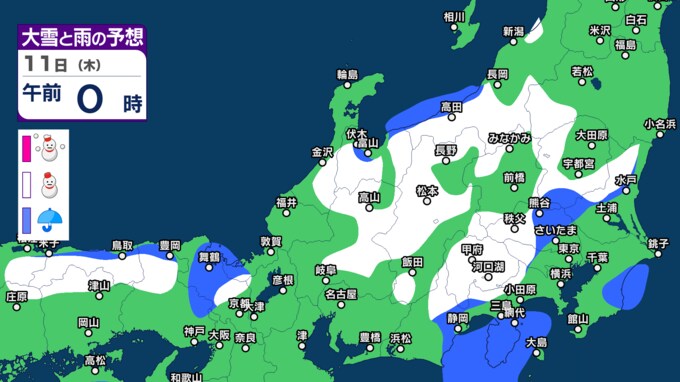 北陸、関東北部、長野 8日に大雪予想 11日は東京・多摩地域などでも雪か【8日(月)~11日(木)雪シミュレーション】