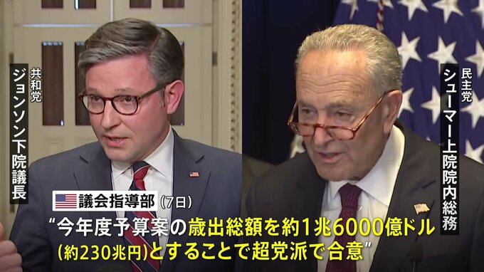 アメリカ議会の指導部は今年度予算案の歳出の総額について、超党派で合意に達したことを明らかにしました。政府機関の閉鎖回避に向け、一歩前進となります。アメリカでは去年10月から新たな会計年度が始まっていま…