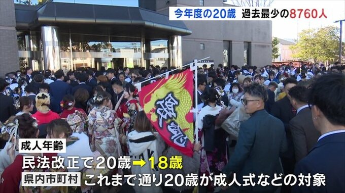 県教育委員会によりますと今年度二十歳になる2003年4月2日から2004年4月1日までに生まれた人は去年11月1日の時点で男性4612人、女性4148人の合わせて8760人となっています。