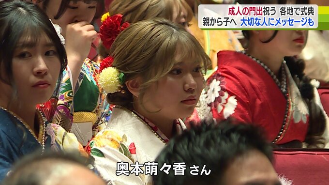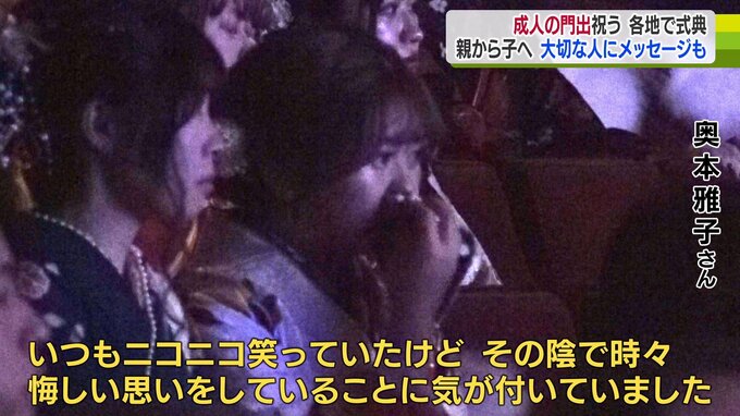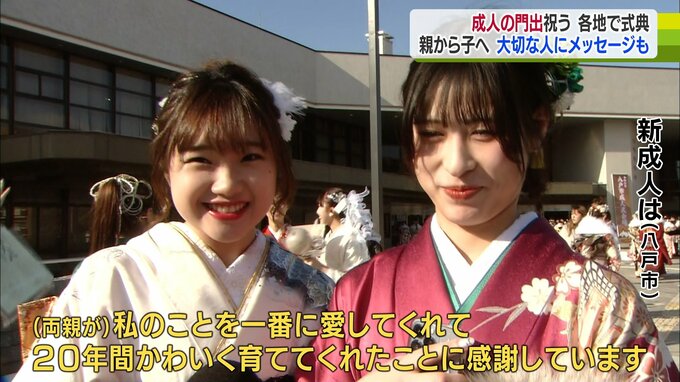 これまでお世話になった両親、保護者に感謝を伝える一方で、むつ市では、親から子へ、大切な人にメッセージを届けるイベントが行われ、節目の行事に花を添えました。晴れ着に身を包んだ奥本萌々香(おくもと・ももか)さんに母親の雅子(まさこ)さんが20年間秘めてきた思いを届けます。