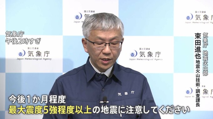石川県能登地方で最大震度7を観測した地震の発生からきょうで1週間となり、気象庁は今後1か月ほど最大震度5強程度以上の地震に注意するよう呼びかけました。気象庁地震火山部 束田進也 地震火山技術・調査課長「…