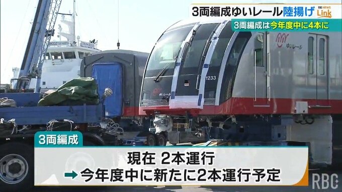輸送力強化に向け、3両編成のゆいレールが8日、新たに那覇港に陸揚げされました。