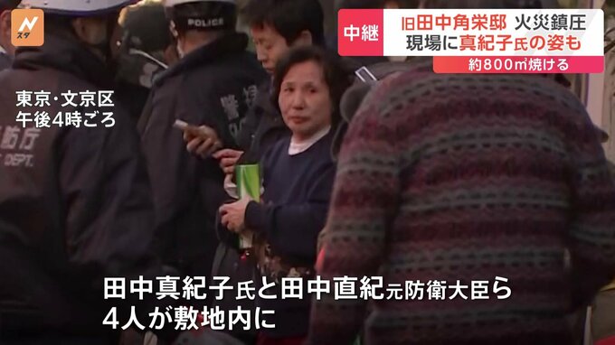 きょう午後3時半ごろ東京・文京区目白台の旧田中角栄邸で火事があり、消火活動が行われていましたが、火はさきほどほぼ消し止められました。現場から中継です。警視庁によりますと、午後3時半ごろ、「旧田中角栄邸…