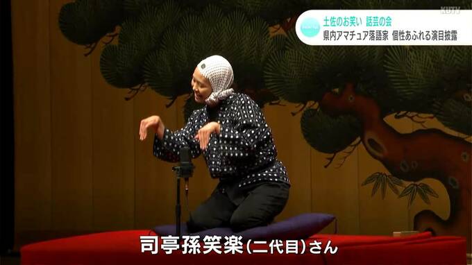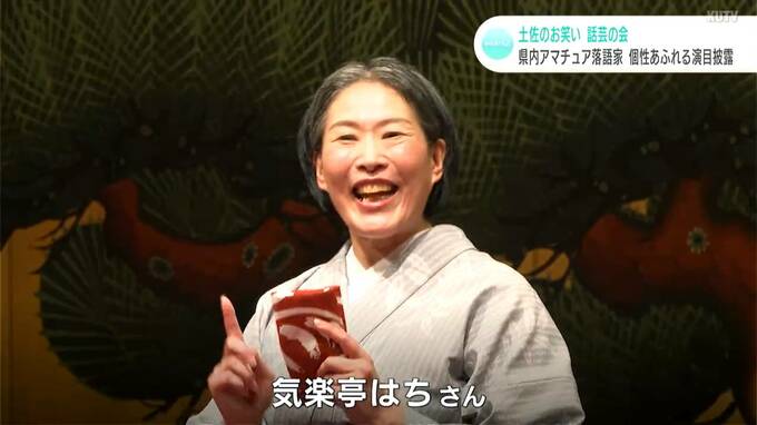 会では、今回初めて参加したという気楽亭(きらくてい)はちさんが「平林(ひらばやし)」という演目を披露したり、司亭(つかさてい)孫笑楽(まごしょうらく)さんが「皿屋敷(さらやしき)」という演目を土佐弁で披露したりしていました。