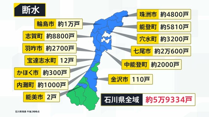 <断水 石川県全域 約5万9334戸 ※8日午後2時時点>