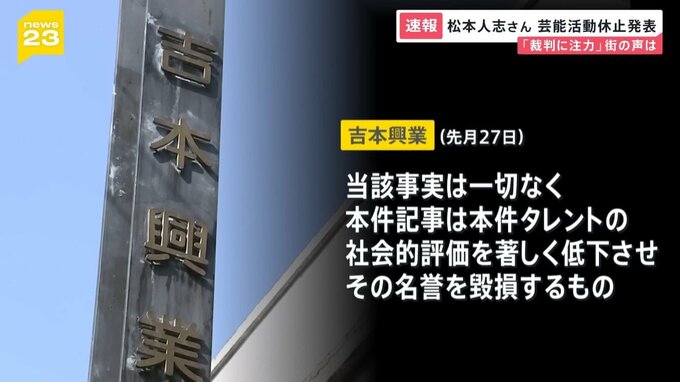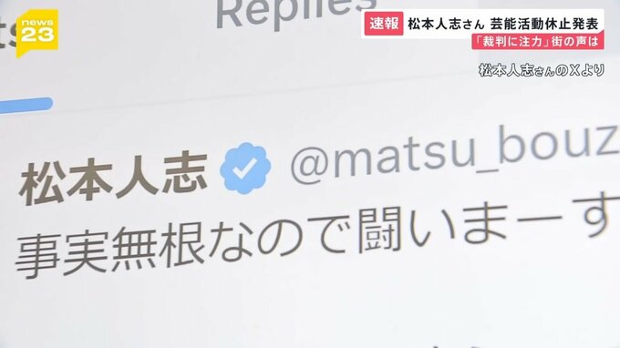 ダウンタウンの松本人志さんが当面の間、芸能活動を休止すると所属先の吉本興業が発表しました。週刊誌報道をめぐり、松本人志さんから、「まずは様々な記事と対峙して、裁判に注力したい」との申入れがあったとしています。