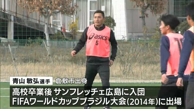 サッカー元日本代表でJ1・サンフレッチェ広島の青山敏弘選手が、母校の作陽学園高校で練習始めを行いました。