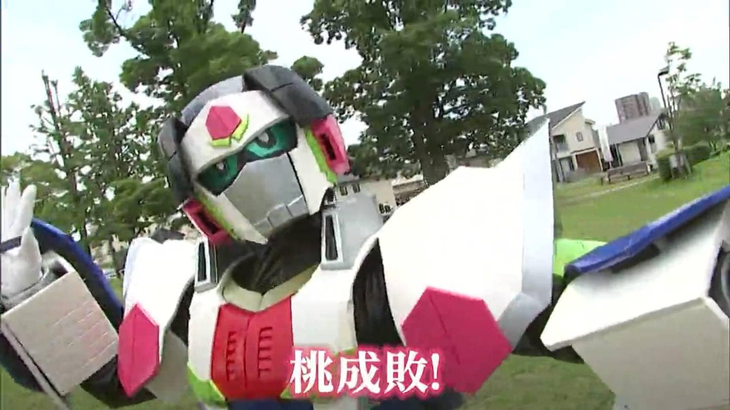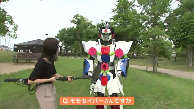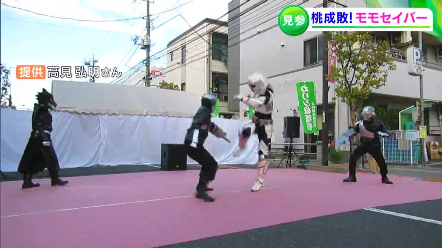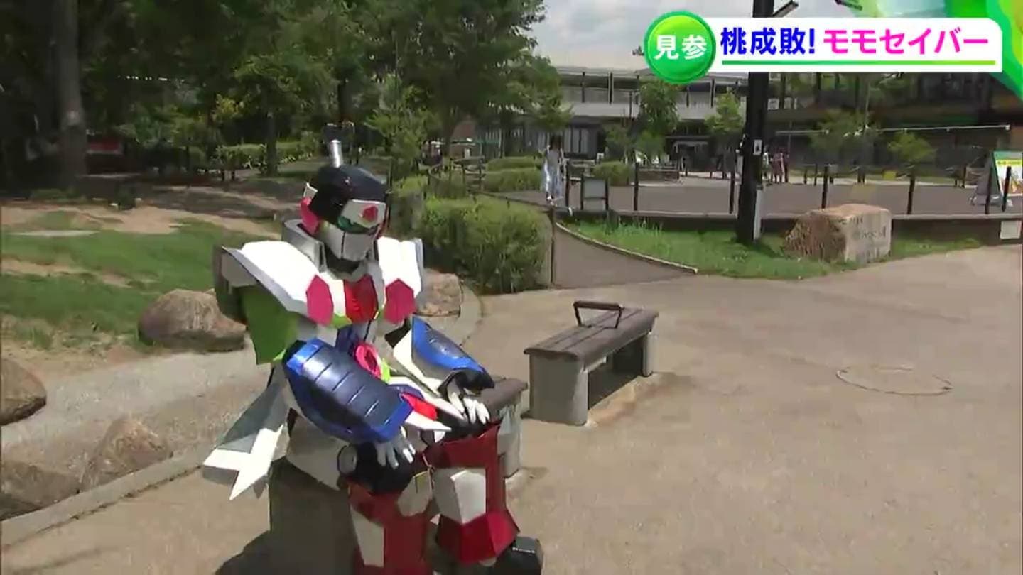 スーツの中には正義の心とふるさとへの熱い思い。きょうもどこかで・・・モモセイバー!