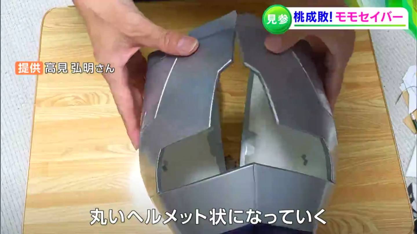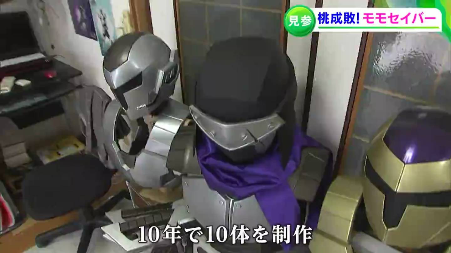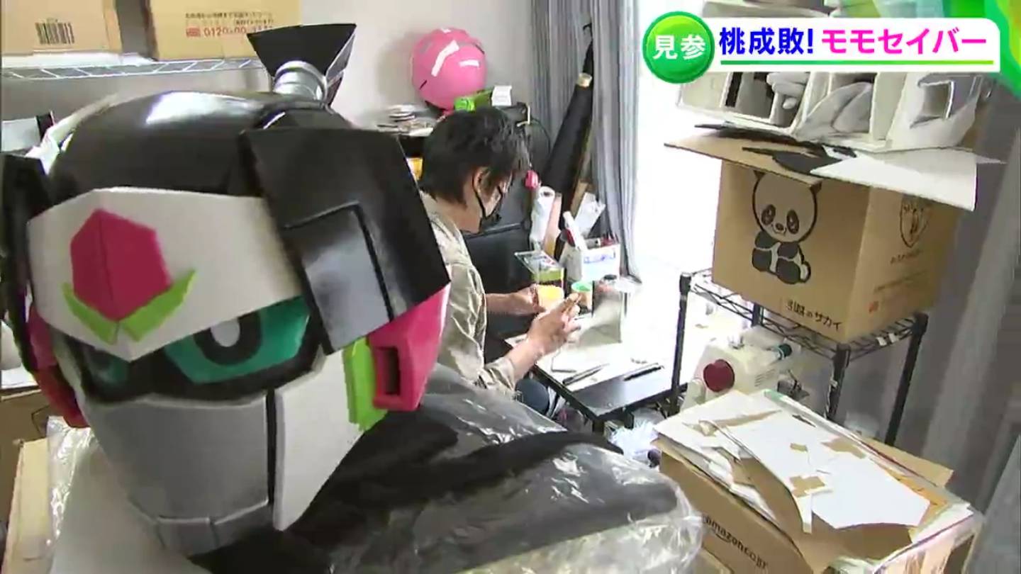 仕事をしながらヒーロースーツを制作する高見さん。最高傑作だというのが約1年かけ完成させたモモセイバーです。