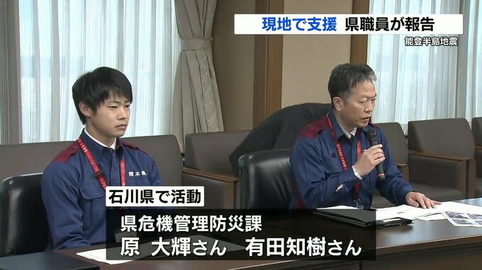 2人は1月4日から8日までの5日間、石川県の災害対策本部で被害状況の調査などにあたりました。また、熊本地震の時の経験から支援物資の受け入れや医療体制の調整など各自治体からの問い合わせに応じたということです。