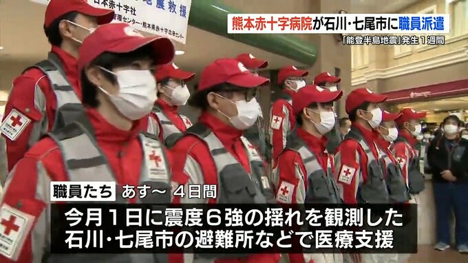 能登半島地震の発生から1週間が過ぎました。熊本赤十字病院は、今回の地震で甚大な被害が出ている石川県にきょう(1月9日)職員を派遣しました。